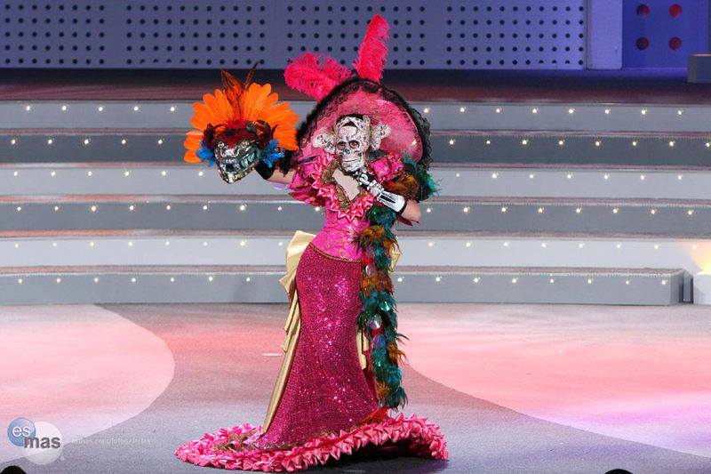 10. En 2010, durante la final nacional de Nuestra Belleza México, la representante del estado de Sinaloa, Tiaré Oliva, lució un vestido inspirado en La Catrina, de un llamativo rosa mexicano. El atuendo ganó el premio al Mejor Traje Típico.