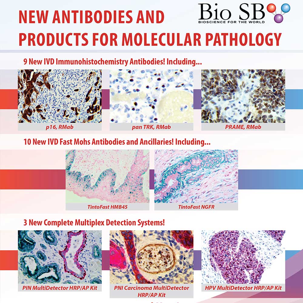 El pasado 2 de marzo la empresa Bio SB, compañía de Biotecnología en el área de Diagnóstico y Predicción de Tratamientos para el Cáncer basada en Santa Barbara, California, EUA, lanzó al mercado en la Convención Americana y Canadiense de Patología, USCAP de Los Angeles, California, nuevos productos de tecnologías rápidas para diagnóstico intraoperatorio para Mohs, Pruebas Multiplex para Inmunohistoquímica (IHQ) y en especial un nuevo producto: la prueba de TRK para el diagnóstico IHQ y predicción de pacientes que se puedan beneficiar con tratamientos personalizados para las translocaciones TRK en diferentes tipos de cáncer.