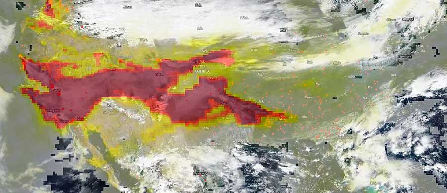 En un comunicado, la NASA explicó que la imagen corresponde al pasado lunes 7 de septiembre, cuando la nube oscureció gran parte del estado de California (origen de los incendios forestales) hasta Arkansas, en la costa este de Estados Unidos. Sin embargo, existen más incendios forestales activos en todo el noroeste del país, hasta Arizona, Utah, Colorado y Nuevo Mexico.