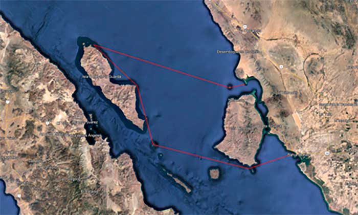 Es también la travesía más larga en tiempo y distancia, esto debido a que el tiempo total conmutado fue de 8 días, y que recorrieron desde la parte norte de la isla del Tiburón hasta la parte norte de la isla Ángel de la Guarda con 70 km de largo, además que, a diferencia de otras expediciones, estos regresaron en sus kayaks (2) sumando seguramente más de 300 km de navegación efectiva como sumamos en la imagen de “Google Earth” a continuación.