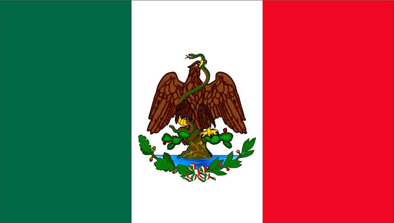 De 1823 a 1864: La Bandera Republicana se utilizó al establecerse la Primera República Federal. Se quitó la corona al águila y se agregaron laureles y olivos. La estructura tradicional del escudo se conserva hoy en día.