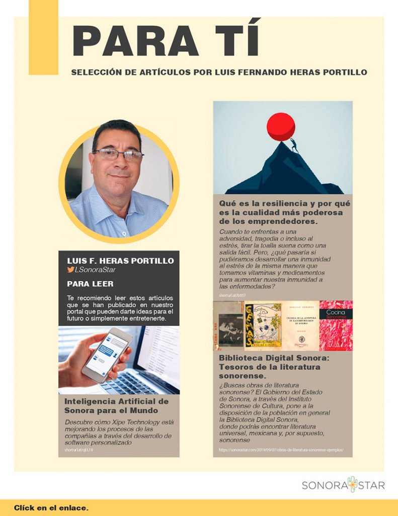 ¿Deseas inspirarte, aprender y descubrir temas interesantes? Consulta la selección de artículos que nos comparte el fundador de Sonora StarLuis Fernando Heras Portillo.