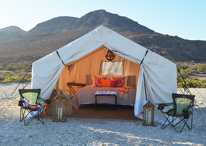 Los huéspedes podrán disfrutar de carpas walk-in bellamente decoradas con camas, mesas de noche, lámparas, alfombras y otras amenidades. También tienen a su disposición el Espíritu Xantus Café, donde un chef prepara deliciosos alimentos y bebidas con el sabor tradicional sudcaliforniano.
