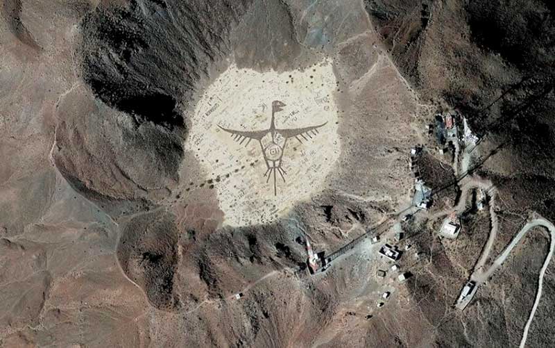 El trazo se realizó con piedra volcánica sobre la superficie. El zopilote es tan grande que puede observarse en imágenes satelitales. Mide 200 metros de largo con alas que alcanzan casi los 190 metros.