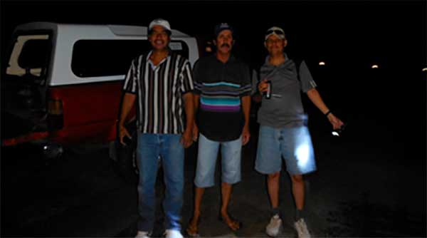 Mi compadre Ricardo Sánchez me acompaña, y a mi compadre Capitán Mantarraya lo vienen a dejar más tarde. Cenamos cualquier cosa y dormimos para salir muy temprano al siguiente día.