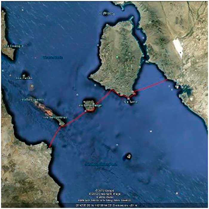 Pasan las horas, isla San Esteban está cada vez más cerca, el viento Sur sigue muy fuerte. El bote me está esperando unos 5 km antes de llegar a la Isla, llego con ellos y decidimos que el viento sur no nos dejará acampar en «El Limantur», tendremos que ajustar el plan y rodear la isla por el norte para protegernos del viento, y acampar en un pequeño campamento al noroeste llamado San Pedro.