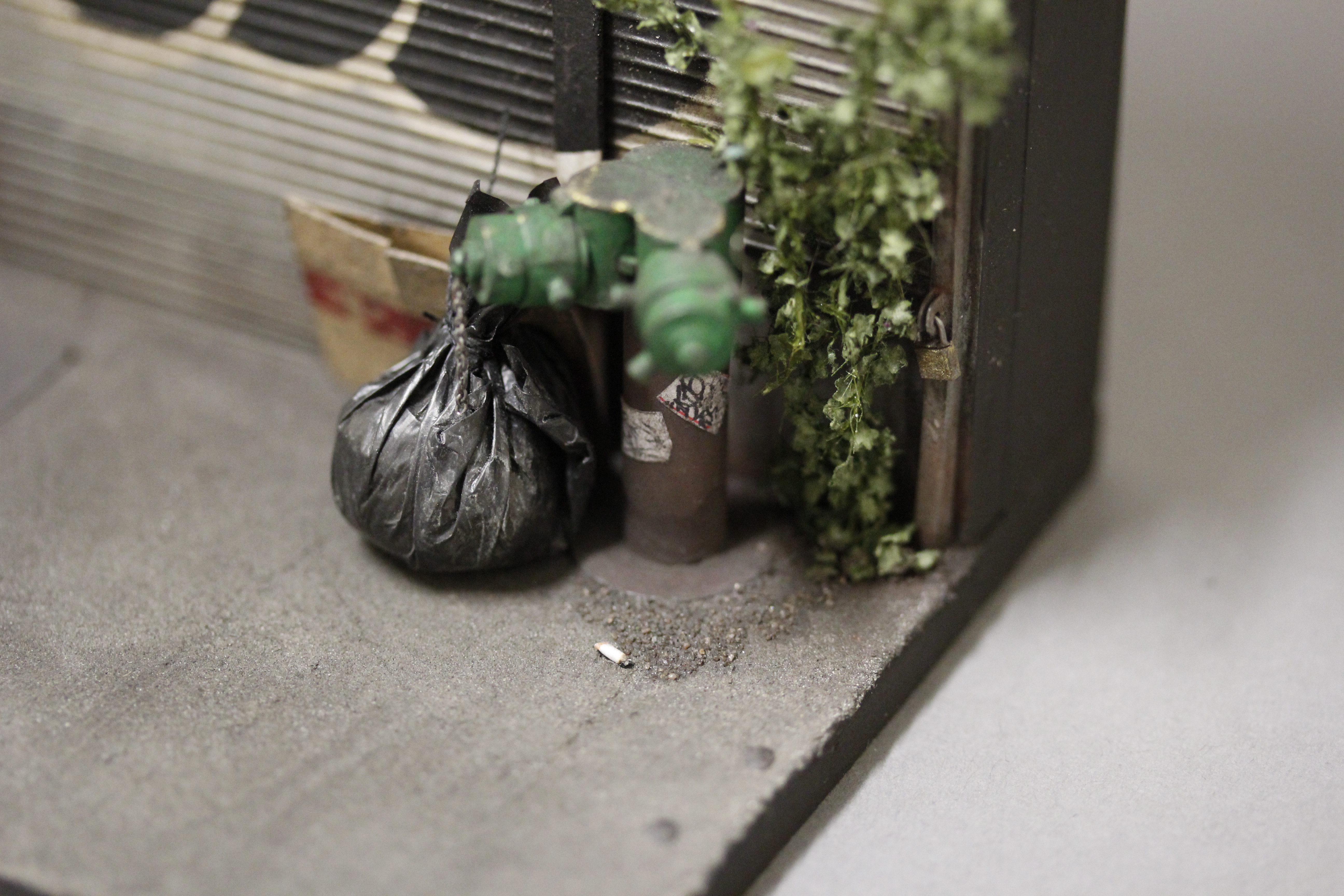 Su pasión por mostrar la esencia de las ciudades en su trabajo lo llevó a dedicarse de lleno al miniaturismo en 2015 para probar algo nuevo. Inspirándose en la tierra, el óxido y la decadencia urbana en general, Josh incluye cada detalle en sus obras, desde cigarrillos hasta basura en la calle y chicles pegados en la banqueta.