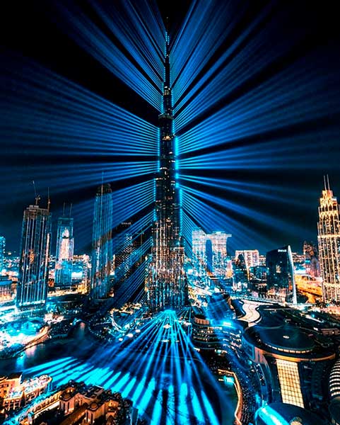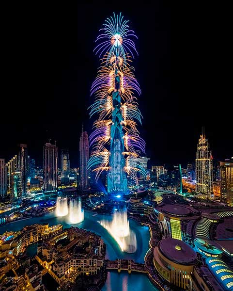 Espectáculo de fuegos artificiales en el Burj Khalifa, Dubái. Fotos: Twitter @BurjKhalifa