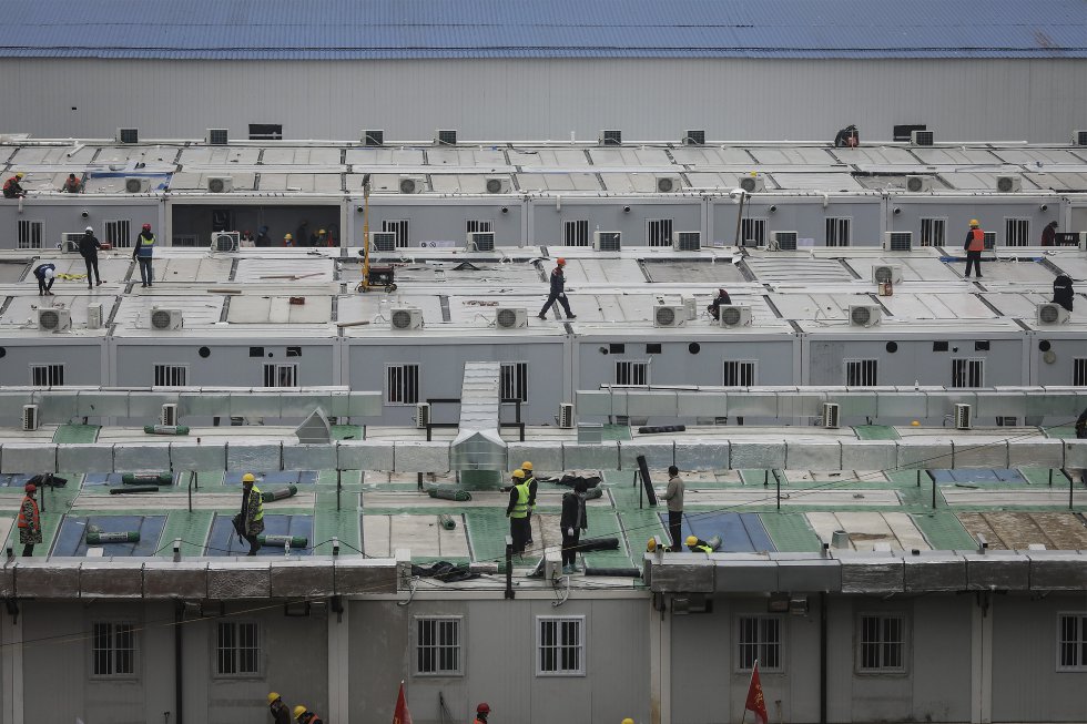 Con tres turnos para cubrir las 24 horas, trabajadores chinos lograron levantar el hospital en 10 días