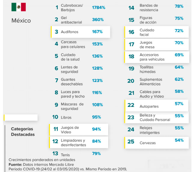 Específicamente en México, las ventas que más crecieron durante la pandemia del Covid-19 fueron: