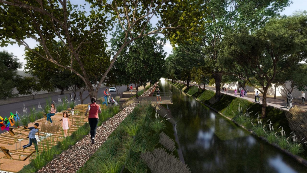 Este nuevo Parque Lineal Contará con áreas recreativas y gimnasio al aire libre, módulos de seguridad, luminarios led y solares, caudal con tecnologías alternativas sustentables, aceesibilidad universal.