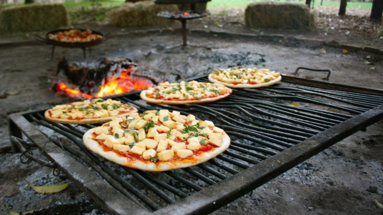 La parrilla debe estar bien caliente, y el fuego alto. Cuando coloques la pizza sobre la parrilla, reduce el fuego a la mitad.