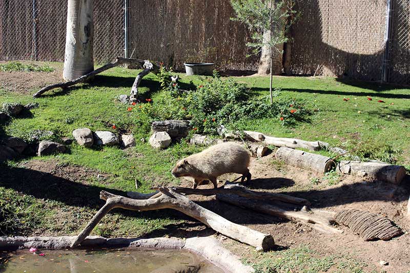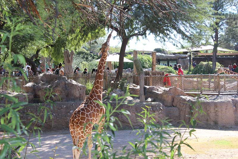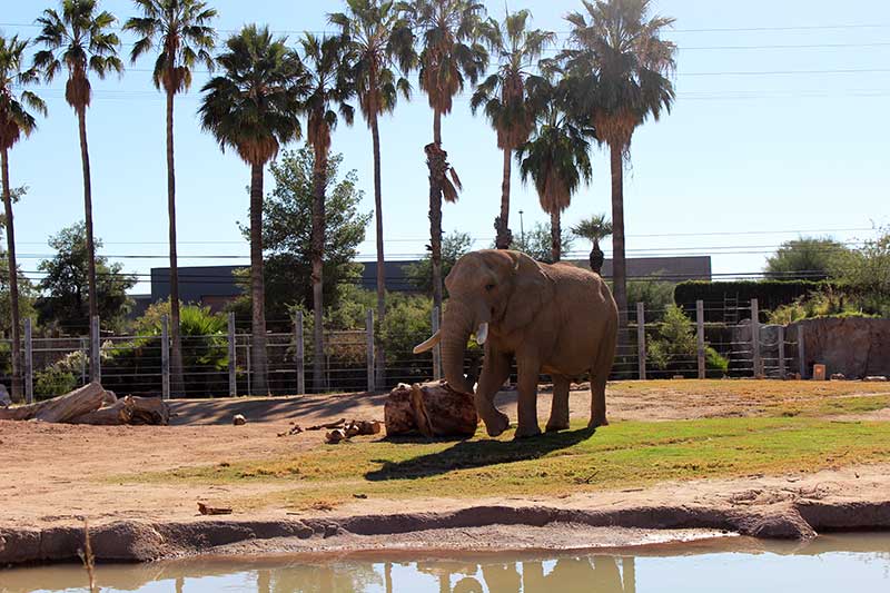 El zoológico se encuentra dividido en cuatro áreas organizadas por su tipo de hábitat. En estas se observa: desde un grupo de elefantes con un enorme macho de grandes colmillos de marfil, varias hembras y una cría, hasta un gran espacio para las cebras y elegantes jirafas, quienes con su gran lengua y totalmente erguidas “ramonean” las hojas tiernas de los árboles desérticos de Arizona.