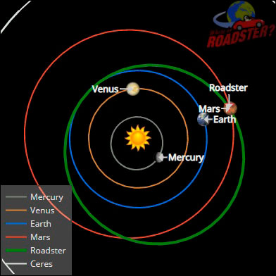 Los primeros cálculos de la trayectoria del Tesla a través del cosmos muestran que ha asumido una órbita alrededor del Sol que lo mantiene alternando entre las órbitas de la Tierra y Marte, aproximadamente.