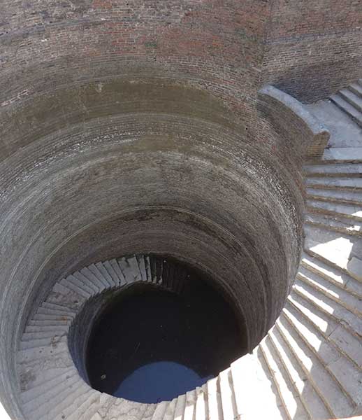 Los escalones conducen hasta el fondo del pozo, que a medida que se va agotando, continúan permitiendo el acceso al agua que se encuentra debajo. Por ello, los pozos escalonados también canalizan la lluvia hacia las fuentes de agua subterránea mejor que los ríos, lo que significa que incluso si nadie extrae agua, continuarán proporcionando agua a la comunidad.
